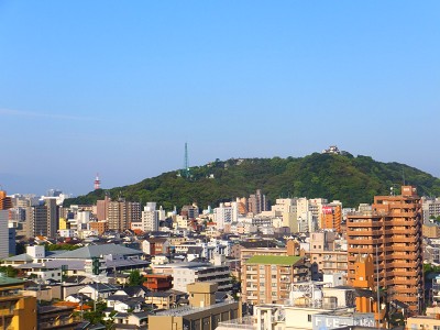 平日の早朝だけあって、誰も居ない!ひとりじめーv 松山の街の景色を堪能します。丁度本日は快晴で、さわやかな朝でした!