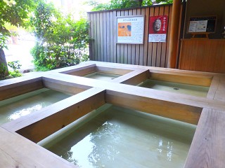 昨日は夜に着いたため、街を堪能する時間があまりなくて。 朝食を終えた後に、道後温泉の街並みを散策しました。 温泉街の中に、こうして足湯を開放している場所がいくつかあるのです。 お宿から、足湯巡りのためのセット(竹籠と手ぬぐい)を手渡してくれました。 お洒落で落ち着ける雰囲気です♪
