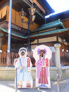 道後温泉のある松山は、小説・坊ちゃんの舞台でもあります。 こんな写真をとるための看板がありました(笑) この2人の他にも、校長(たぬき)やら色んな登場人物の看板もありました(笑)