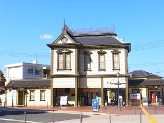 こちらは、伊予鉄道が走る道後温泉の最寄り駅、道後温泉駅です。 駅舎も、レトロで可愛い〜! ちょうどここでしか買えない坊ちゃん列車のミニカーが売店にあるのですが、 残念、開店時間前でした(笑)<朝8時
