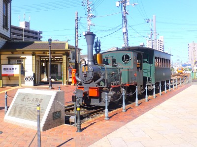 そしてこちらが、坊ちゃん列車。 わぁい、蒸気機関車だ!!(大はしゃぎ) 今は全部電気で走るタイプの列車ですが、かつてはディーゼル式の 蒸気機関車のこちらが、現役で走っていたとのこと。 どうして、こう昔のものはレトロで可愛いと思ってしまうんだろう(←私の趣向です)