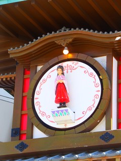 街の名所のひとつ、坊ちゃんカラクリ時計です! 時間になると、音楽と共に登場人物がこうして出てくるカラクリ仕掛け。 今の時間はマドンナが登場。丁度ナイスタイミングでした♪