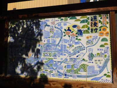 道後温泉の案内板も、タイルづくりでとてもかわいいです! 本当は、商店街とかもっとあちこち回りたかったのですが、 飛行機の時間までに、しまなみ海道を自転車でサイクリングする、という目的の為 朝早くに一旦松山市を後にし、今治市へ向かいます。