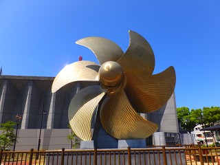 目的地に向かう途中、こんなものを発見。 こんぴらさんで見かけた、でっかい金ぴかのスクリューだ!!