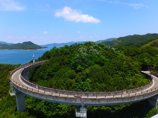 帰りの飛行機に間に合わせる為に、時間が限られていたので 今治と一つ目の島、大島を結ぶ来島海峡大橋だけをサイクリングしました。 その島の途中に、馬島という無人の島がありまして。 エレベーターで下まで降りられるそうです。 無人島探索…!いいなぁ。 時間がなかったので、今回は降りませんでした。また次回!