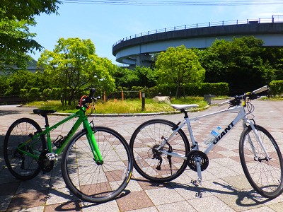 実は、ロードバイクって乗るのは初めてなんだけど、大丈夫かなぁ… と思っていたら、係員の方が優しくレクチャーしてくれるので、全然初心者でも安心です。 ブレーキは一度に前輪・後輪同時に、ゆっくりかけること。 片方だけだと(特に前輪だけ止めると)前につんのめってふっ飛ばされて大けがします。