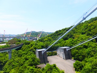 見えてきました見えてきました!しまなみ海道をつなぐ吊り橋の大きな橋脚が!!