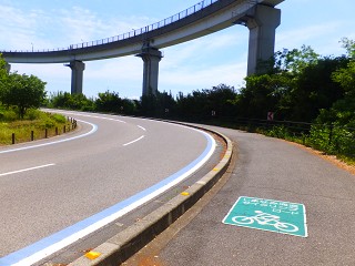 道がぐるぐる〜! サイクリング専用通路があるって、考えてみれば凄いよなぁ。 自動車専用道路と並走するわけでもなく、これの為だけに作ったんだから。 サイクリングを楽しむ人たちの聖地となるわけだ。
