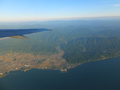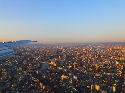 まだ明るかったので、景色を楽しむことが出来ました。 割と四国1周に近かったので、見下ろしながら、ここ通ったかなーなんて 思いを馳せてみたり。 山々を抜けて、瀬戸内海を越えると、大阪の街並みが見えてきます。 四国から戻って改めて見ると、やはり住宅地や建物の多さが凄いです。