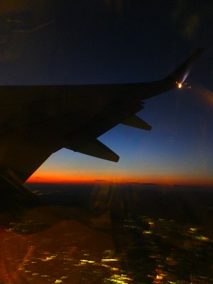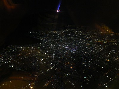 飛んでいるうちにあっという間に真っ暗に。 空から見下ろす街並みの明かりが、まるで朝露に濡れた蜘蛛の巣みたいに きらきらと瞬いて、とても綺麗でした。 デジカメに収めにくいんだけど、手で窓ガラスの反射を防ぎながら撮れたよ!