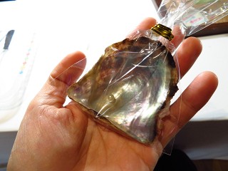 水族館の一角に、アコヤ貝を開いて真珠を取り出してみよう!というコーナーがありまして。 挑戦してきました(笑) 薄くて華奢な、閉じた貝殻を、バターナイフみたいなものを隙間から入れて、 ぱっかりと開けるのです。