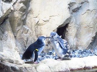 淡水魚コーナーを抜け、海獣コーナーへ。 こちらはペンギンさんたち。仲睦まじいですv