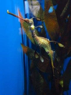 泳いでいる所は初めて見たかも! リーフィーシードラゴン。 あまり枝が成長しておらず、進化前のポケモンのようだ(笑)