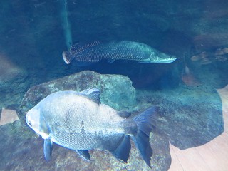 さてさて、淡水魚のコーナーですよ! こちらはフナの変わり種、金魚の元となった、テツギョさんです。 色こそ黒っぽいですが、ひらひらしたフォルムが美しいです。