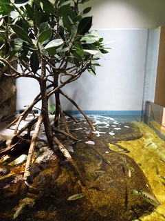 テッポウウオさんは、展示の仕方がマリンピアとほぼ瓜二つ。 他にも、展示の仕方やディスプレイが似たような展示がいくつかありました。 最近の主流なのかな?関わった人が同じなのかな?