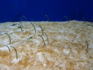 チンアナゴ・ニシキアナゴさん。やはりこの子らは人気ですね! 皆必ず立ち止まってご覧になります。 しかしな……びっくりする事に、こいつら、砂から出ると、実はかなり長いんだぜ……(ぉ)