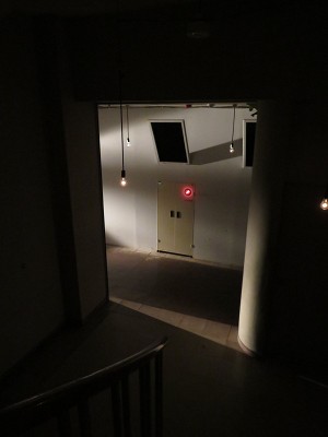 あの換気扇から差し込む光に近づくにつれて、心臓が脈打つような音が 次第に大きく聴こえてきました。 心音の発信源は、2階の廊下の端にあったこの理科室。 他には光源がなく真っ暗な理科室の中央にある台に、1つの電球が、脈打つ鼓動の音と同時に 紅く激しく点滅を繰り返していました。 それはまるで、生きようと必死に力強く拍動する、心臓そのもの。 中央にある台はちょうど、人1人分ぐらいの大きさなのですよね……