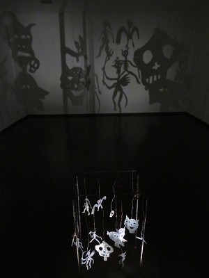 最初に出迎えてくれるのは、今回の2018年度の芸術祭に合わせて新しく作られた 『影の劇場 〜愉快なゆうれい達〜 (作:クリスチャン・ボルタンスキー氏)』です。 操り人形になぞらえたような、骸骨や悪魔、お化けのシルエットが、影絵として浮かび上がる コミカルでありながらも、どこか陰のある雰囲気を持ち合わせる作品です。 風を受けると、お化けたちのシルエットが奇妙にカタカタ揺れるのが、また印象的。